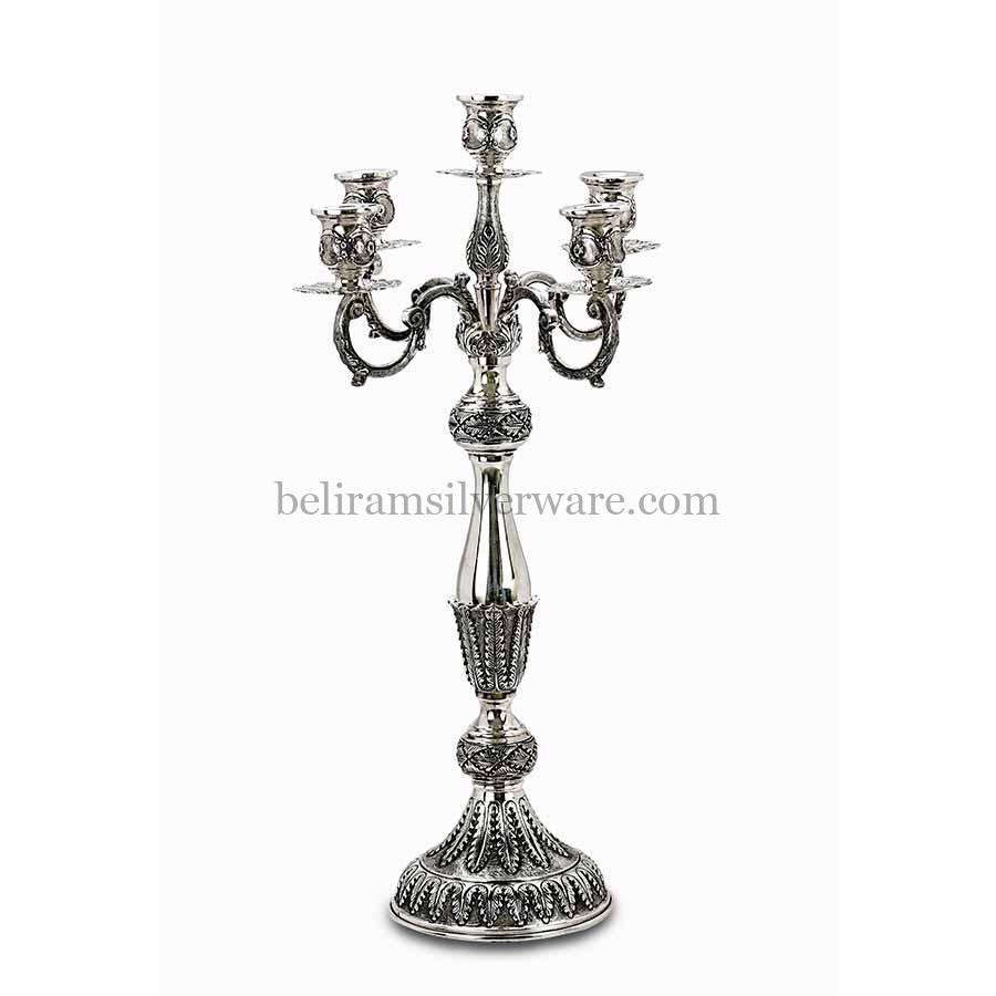 5 Arms Oxidised Silver Candle Stand