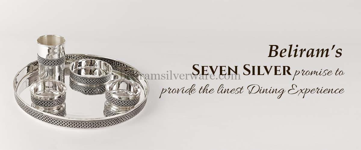 With aesthetic designs at Beliram, the Pure silver dinner set is one of the exquisite set to satiate th desire for an exclusive serve ware. To dine lavishly, choose the modern touch to the conventional articles of Silver and from the ranges of uniquely crafted silver thali cost that is reasonably set.